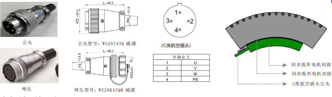 備注:l.標準電纜線長0.5米(配航空插頭),電機電纜線最大外徑d=7.5mm,拖鏈內(nèi)最小彎曲半徑37.5mm, 若有特殊要求電纜線長及端子可根據(jù)客戶要求定制。